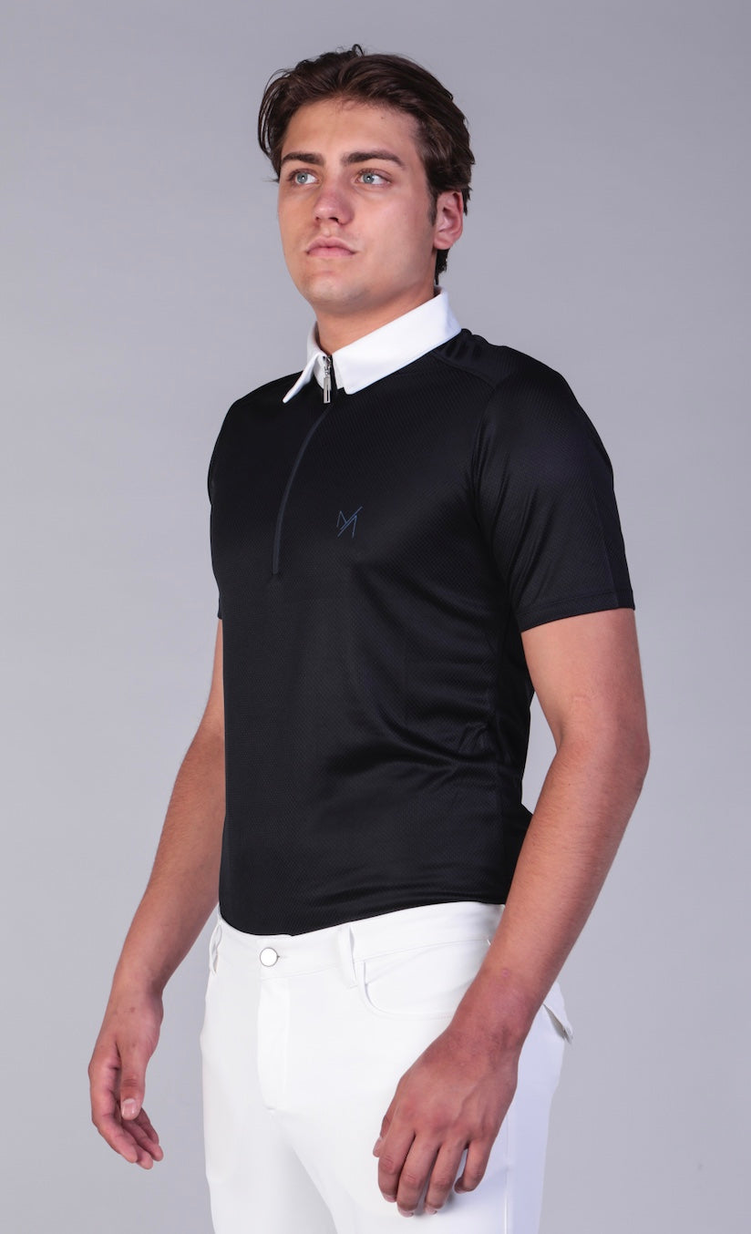a distinctive garment that updates the wardrobe dedicated to horses and leisure occasions. This polo shirt is made of breathable technical honeycomb and is characterized by a slim and elegant fit;